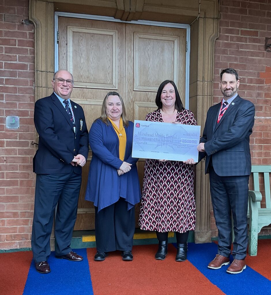 A huge thank you to everyone that has donated and bid to date. We were delighted to present an intial cheque for £2,500 to Laura Mackie, Headteacher of Minehead Middle School on 23rd January 2026. It was great to hear of the work the school and the wider community is doing to support families and chidren of this tragic event.